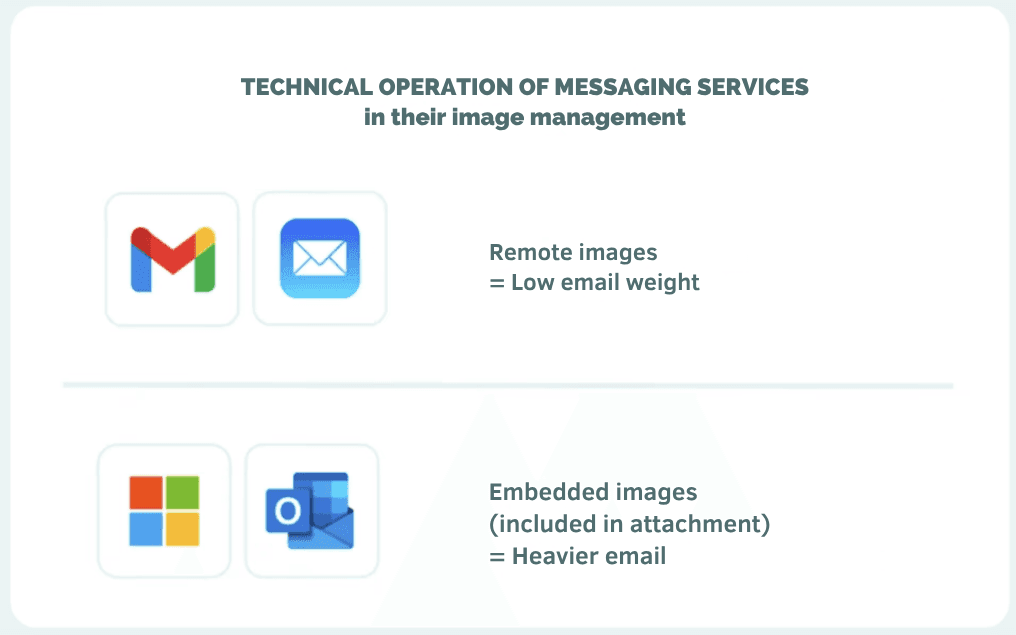 In contrast, on Outlook, the images in an email are embedded in the message (embedded). They are like attachments to the message.